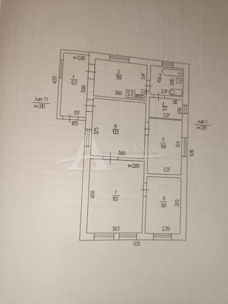 в доме прихожая, 4 комнаты, кухня, санузел и котельная.