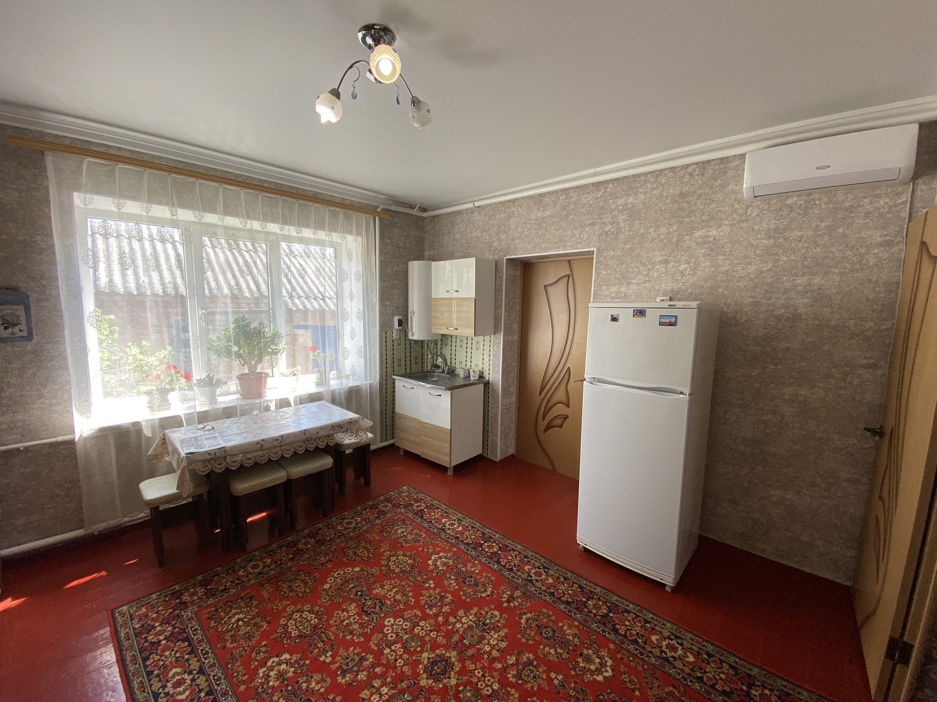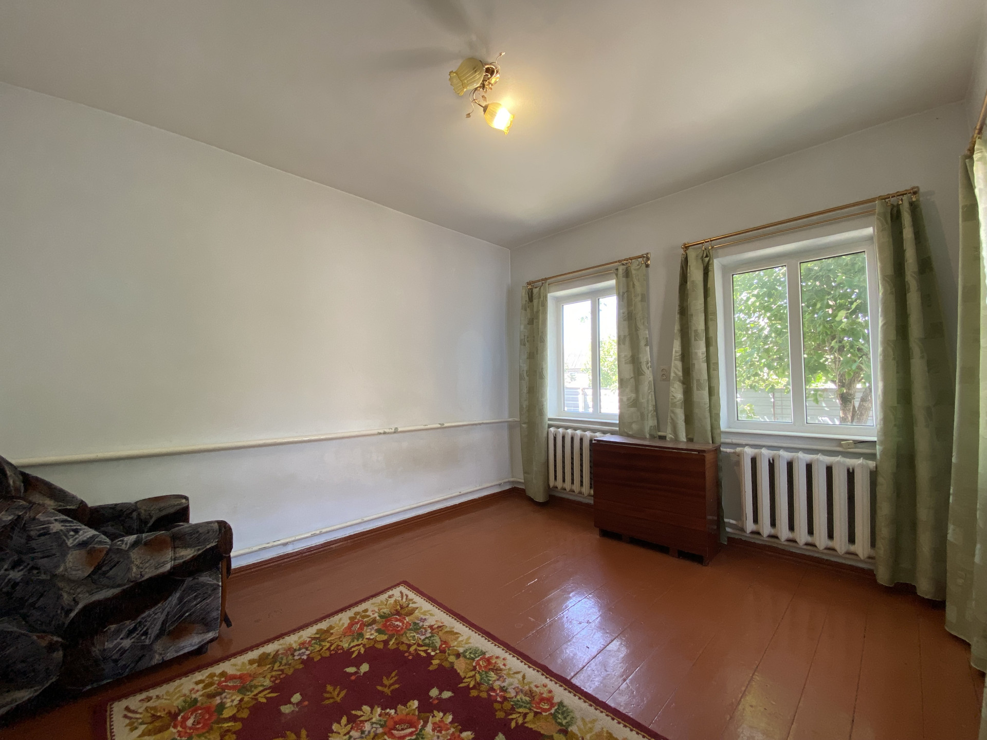 Дом №1 состоит из 3-х комнат, кухни и совмещенного сан.узла (установлен душевой уголок). Сделан косметический ремонт. Высота потолков 2.80. Пластиковые окна. Установлен кондиционер. Крыша перекрыта шифером.