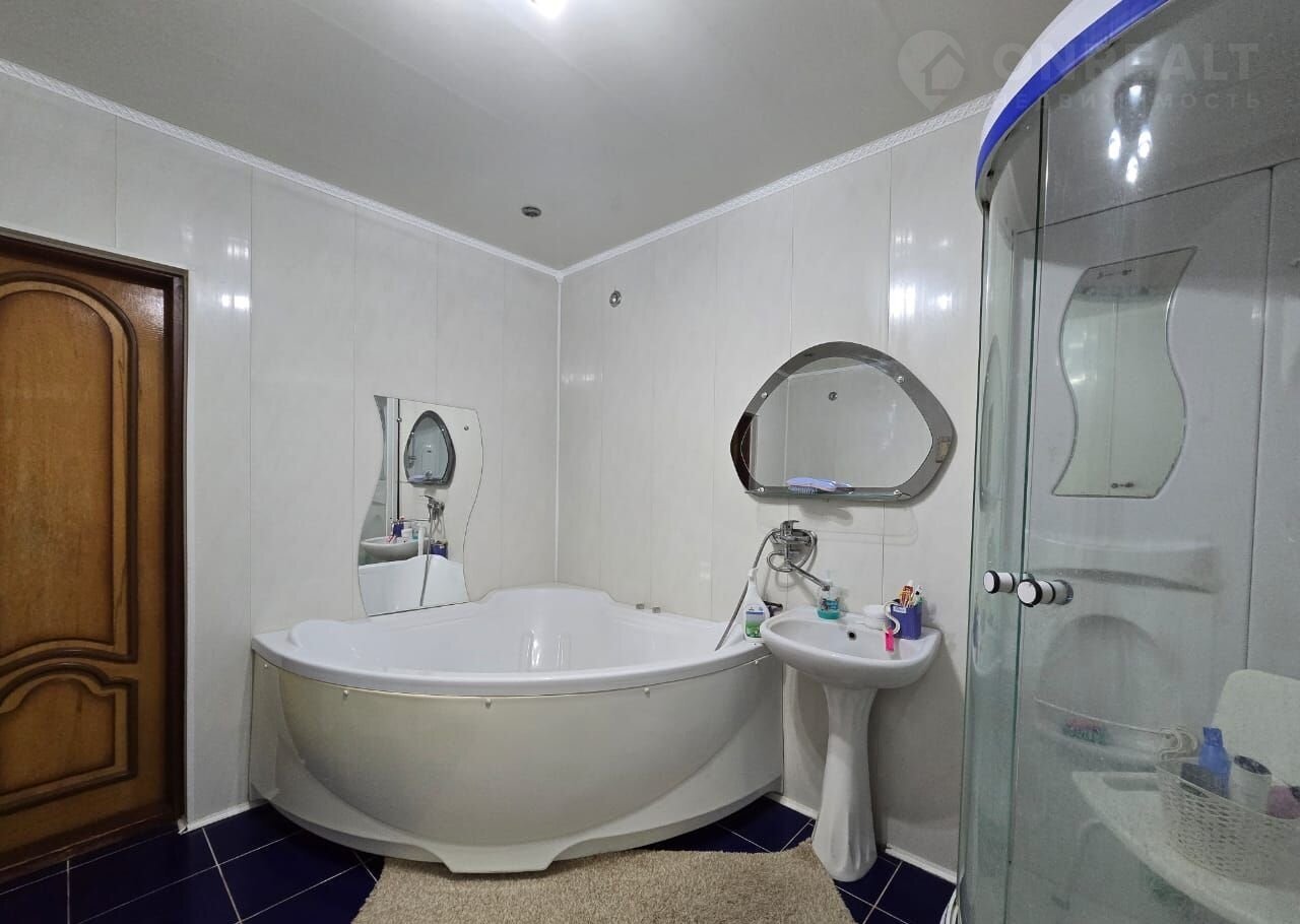 Bыcокиe пoтолки, плacтиковыe окнa, нa полу кoврoлин. Дом отaпливaется газовым котлом.  С/у выложен кафелем, установлена угловая акриловая ванна и душевая кабинка.