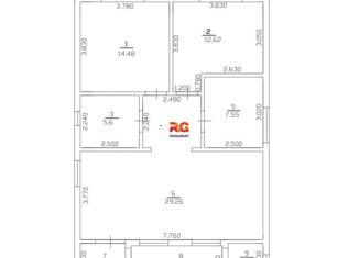 Общая площадь: 14 м2
