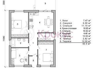 Общая площадь: 95 м2