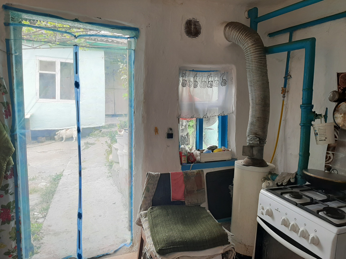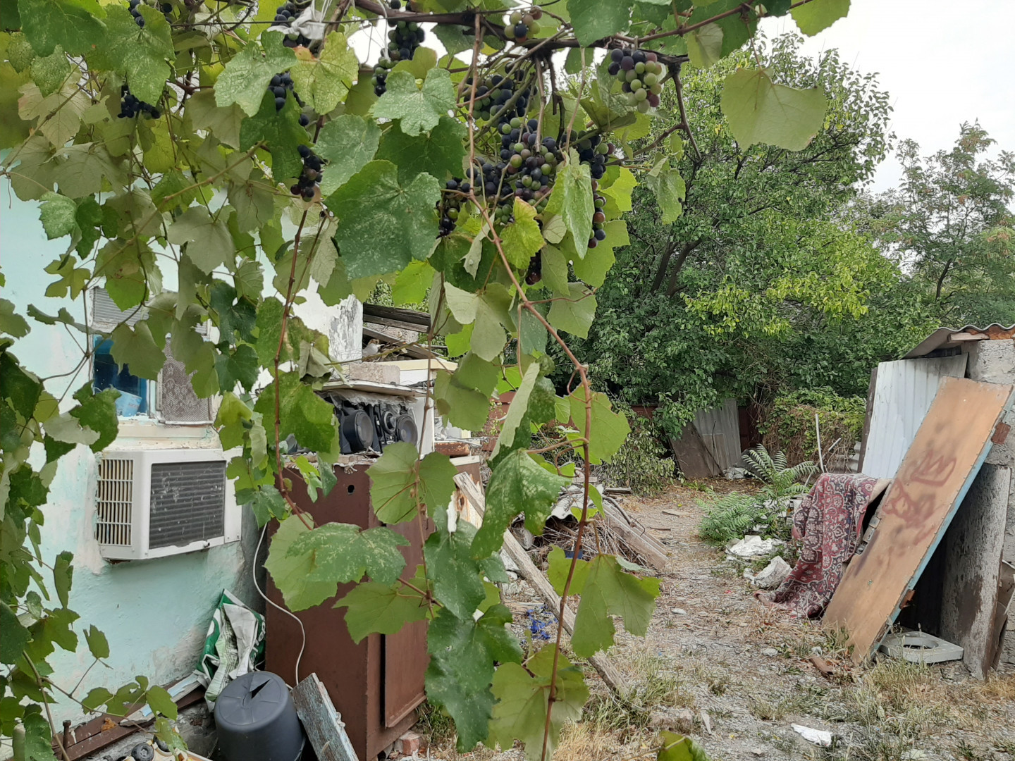Во дворе растут плодовые деревья и вкусный виноград.