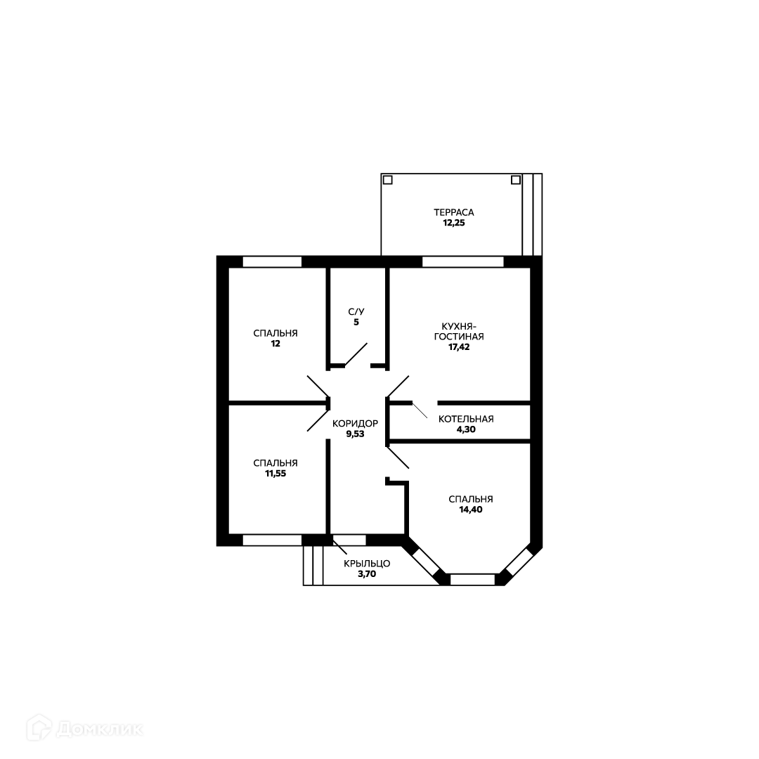 Дом имеет террасу (13м²) и крыльцо, выполненные в едином монолитном стиле.