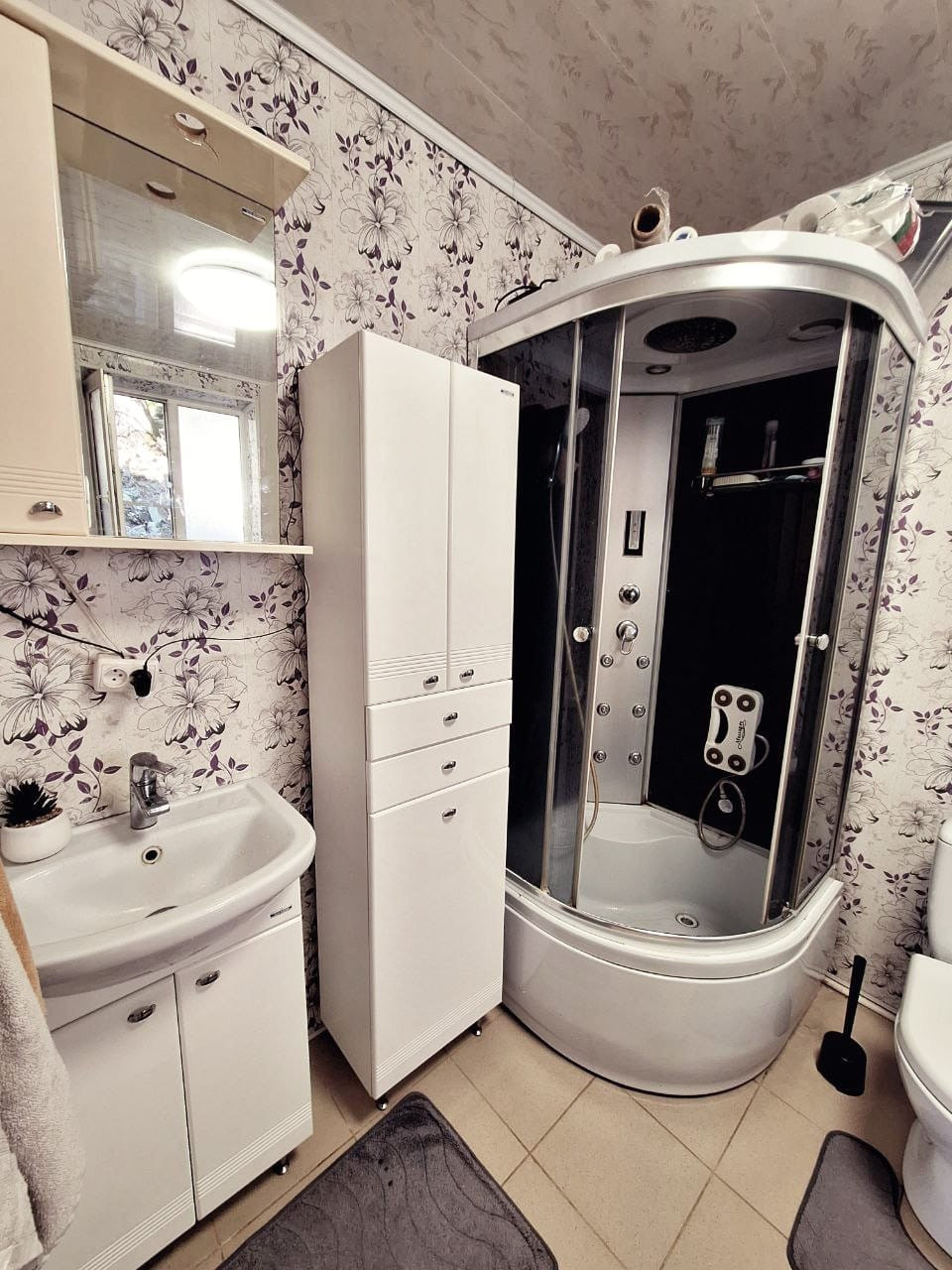 Подключены все коммуникации: газ, свет, централизованная вода (без отключений), а также накопитель с гидрофором на 1000 литров.