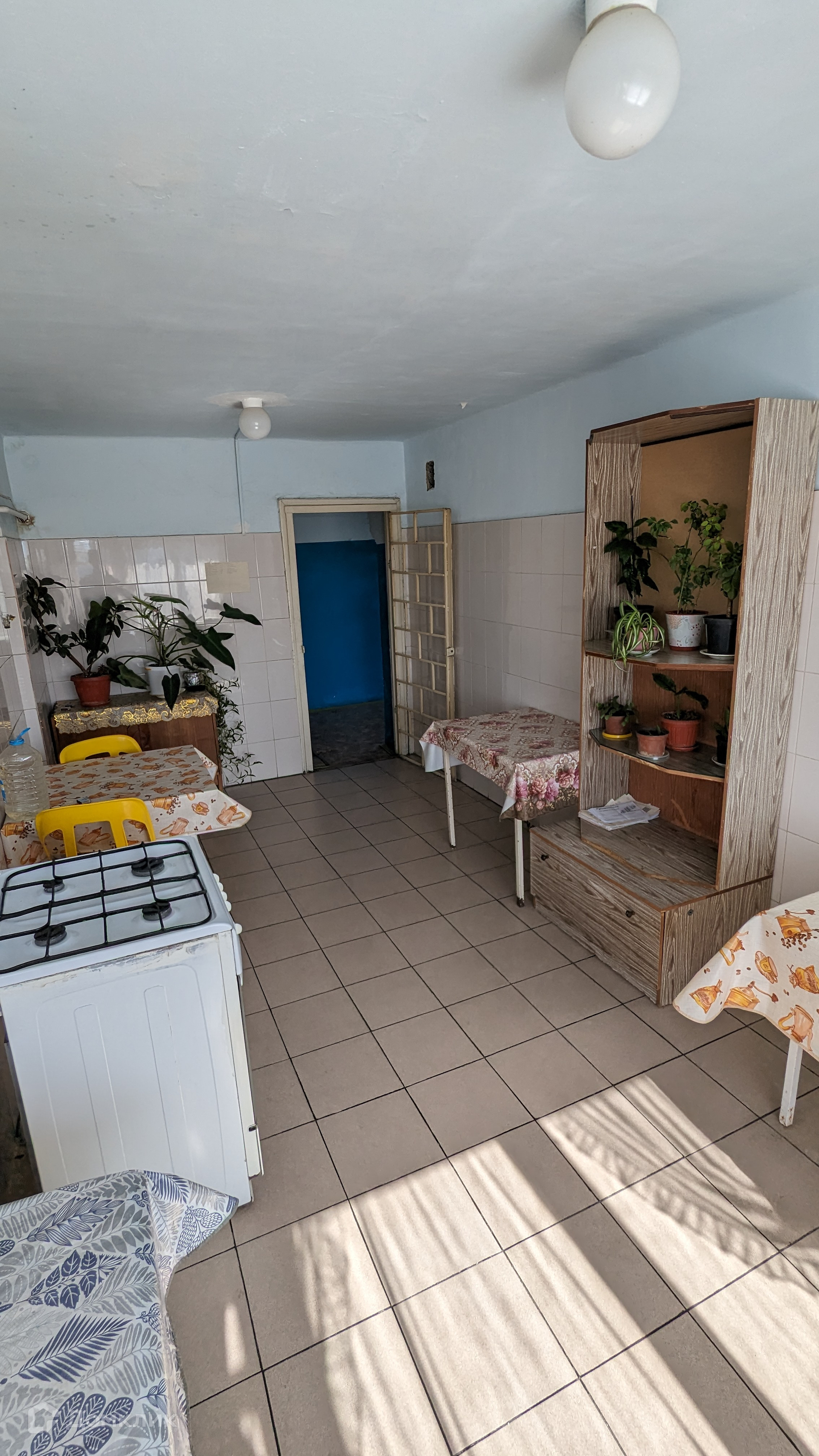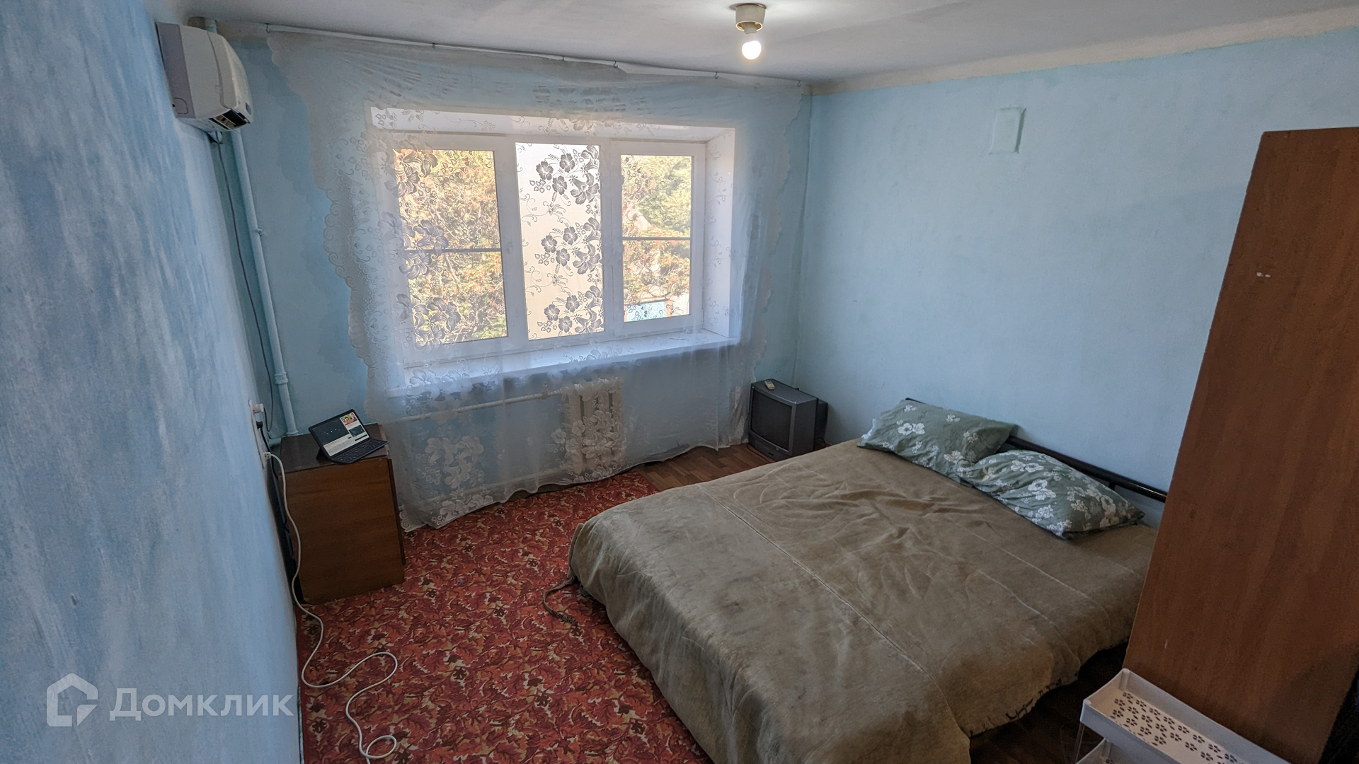 Состояние жилое. На полу постелен линолеум, стены покрашены, потолок побелен, заменена входная дверь, установлено пластиковое окно и кондиционер, остается холодильник.