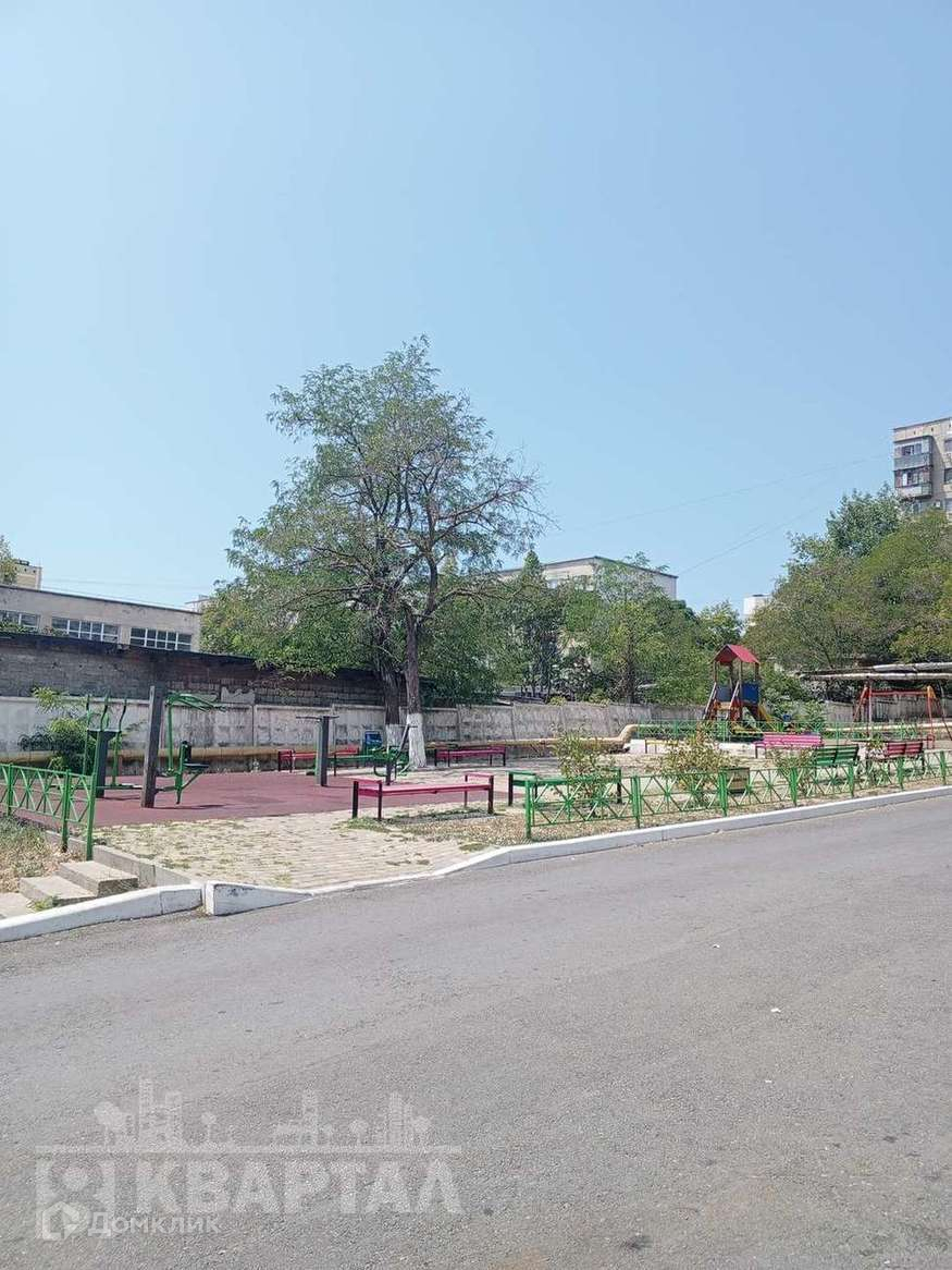 Во дворе спортивная площадка, беседка.