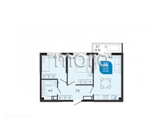 Общая площадь: 49.7 м2