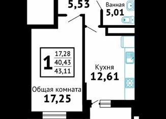 Продаю 1-комнатную квартиру, 42.3 м2, Мысхакское шоссе, 59Д