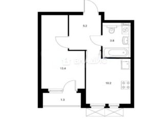 Общая площадь: 34.1 м2