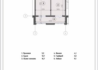 Общая площадь: 52 м2