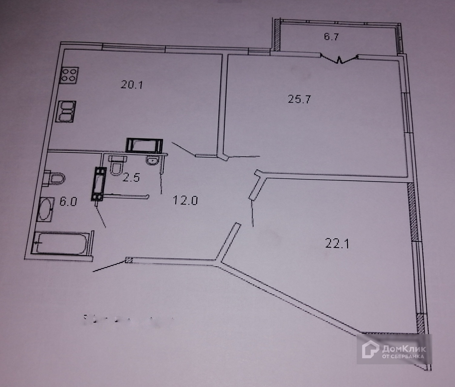 Общая площадь квартиры 95,7 кв.м. Просторная кухня-столовая 20,1 кв.м.,  две изолированные комнаты (25,7 + 22,1 кв. м.),