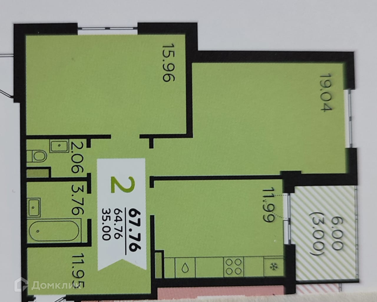 Общая площадь 67.43 м2