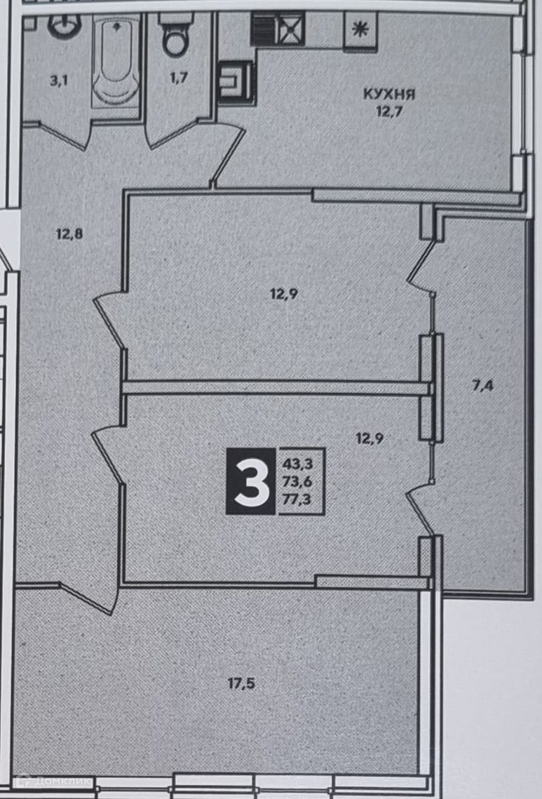 Общая площадь 77.3 м2