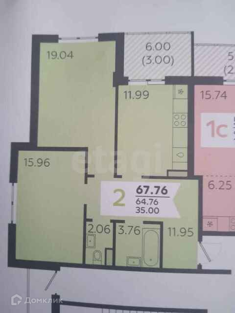 2-комнатная квартира, 67.7 м2, этаж 13 / 19, на продажу в Новороссийске, улица Котанова, 7к3