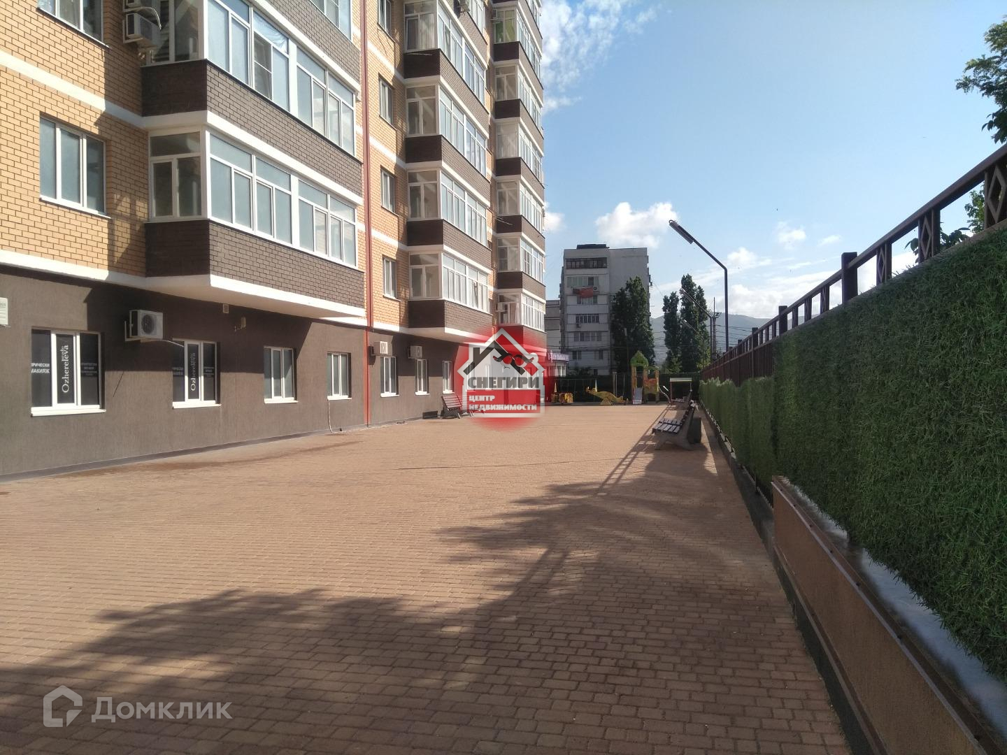 Закрытый огороженный двор. Во дворе детская и спортивная площадка, места для отдыха.