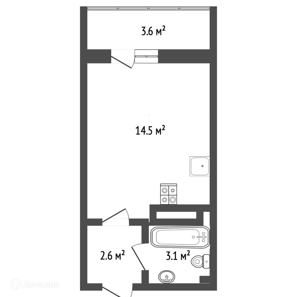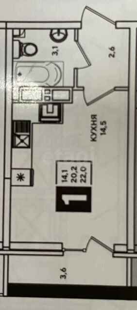 Общая площадь 22 м2
