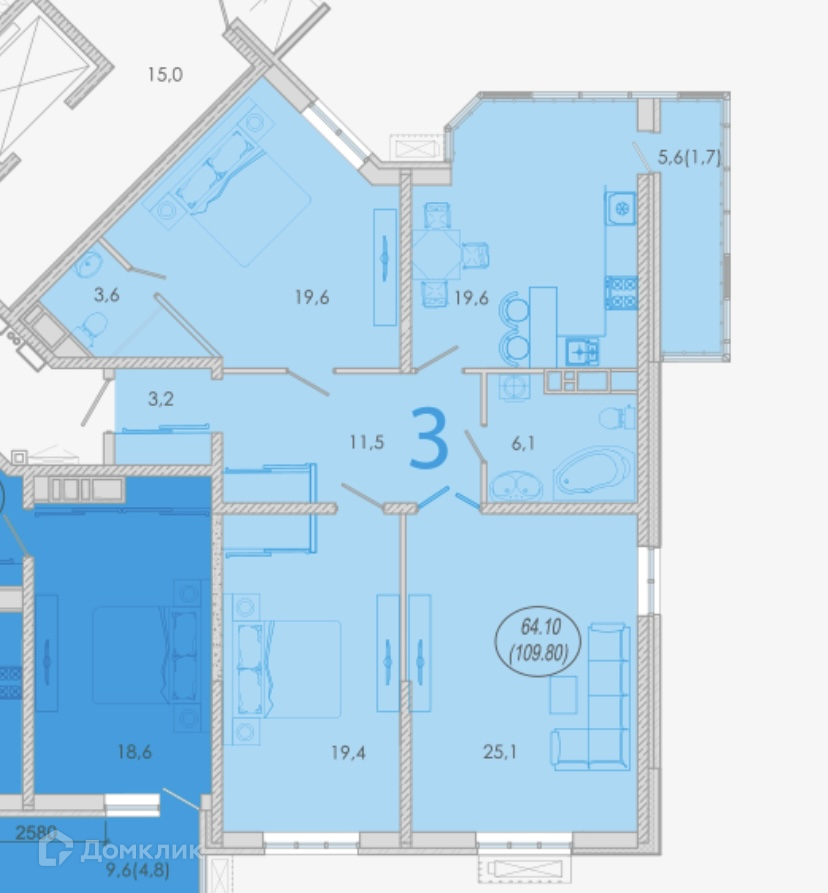 Общая площадь 110 м2