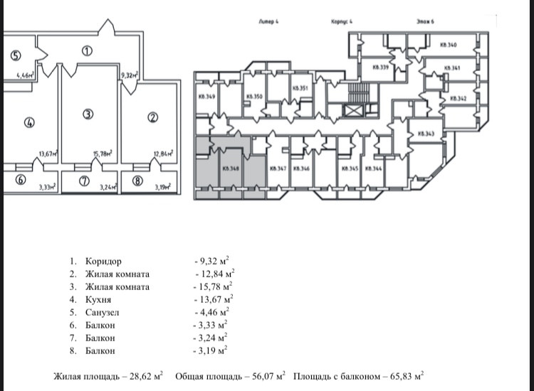 Общая площадь 65.83 м2