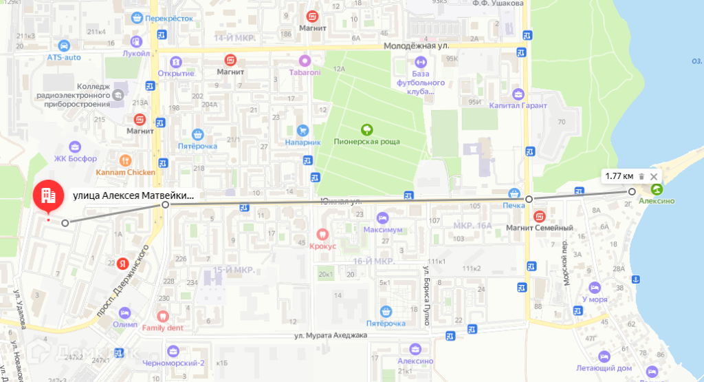 Дом расположен в пространстве с очень хорошей инфраструктурой, в шаговой доступности – не более 5 минут различные магазины, торговые центры, аптеки, парикмахерские, остановки общественного транспорта, школа и детский сад, 1.8 км до пляжа Алексино. В 200 метрах пионерская роща, где можно гулять, устраивать пикники, заниматься спортом.