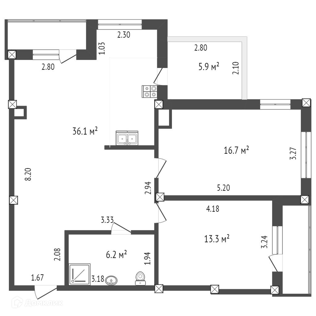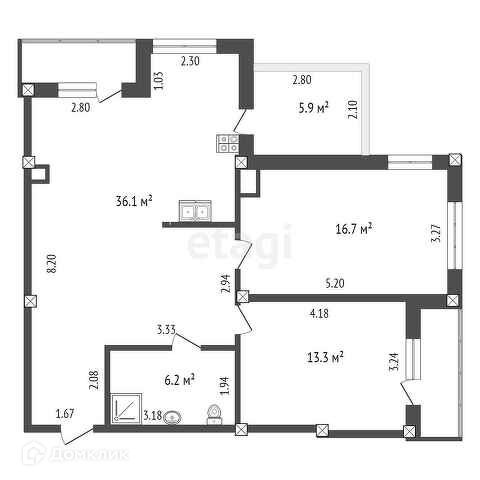 Площадь кухни 36.1 м2