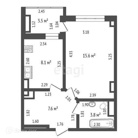 Общая площадь 35.1 м2