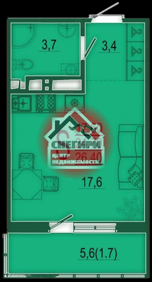 Общая площадь 25.6 м2