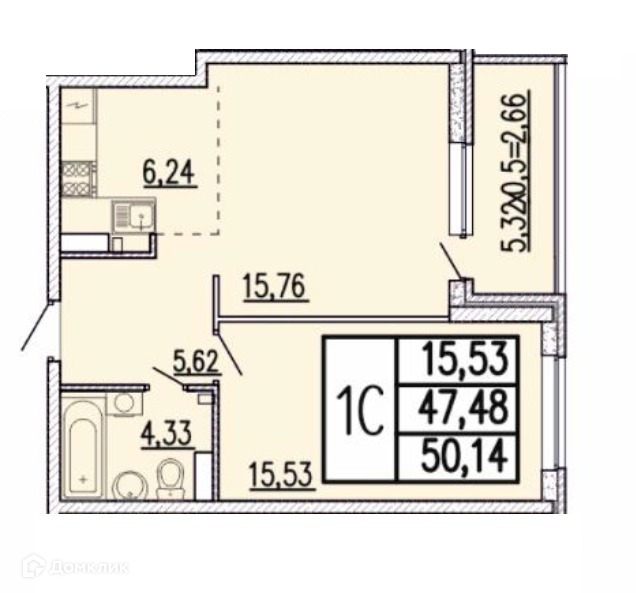 Общая площадь 50 кв.м Просторная кухня-гостиная 22 кв.м.-мечта любой хозяйки!