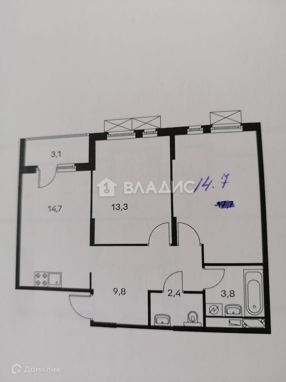 Площадь кухни 14.7 м2