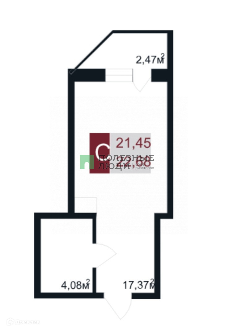 Жилая площадь 17.37 м2