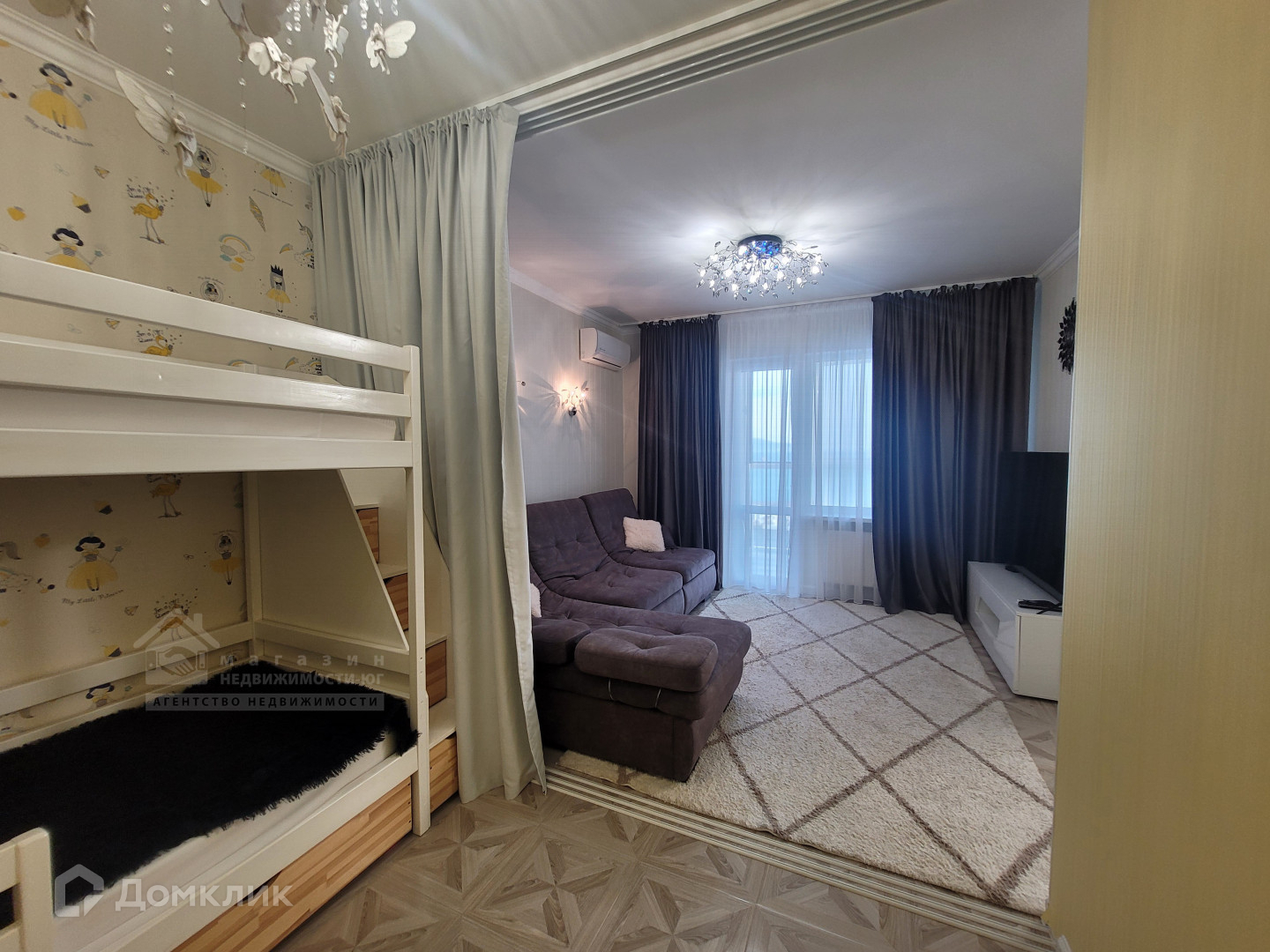Квартира с ремонтом, меблирована, есть вся необходимая техника. Комнату собственники отлично зонировали, благодаря чему квартира подойдет как для семьи с детьми, так и просто, если вам хочется спальную зону скрыть от глаз ваших гостей.