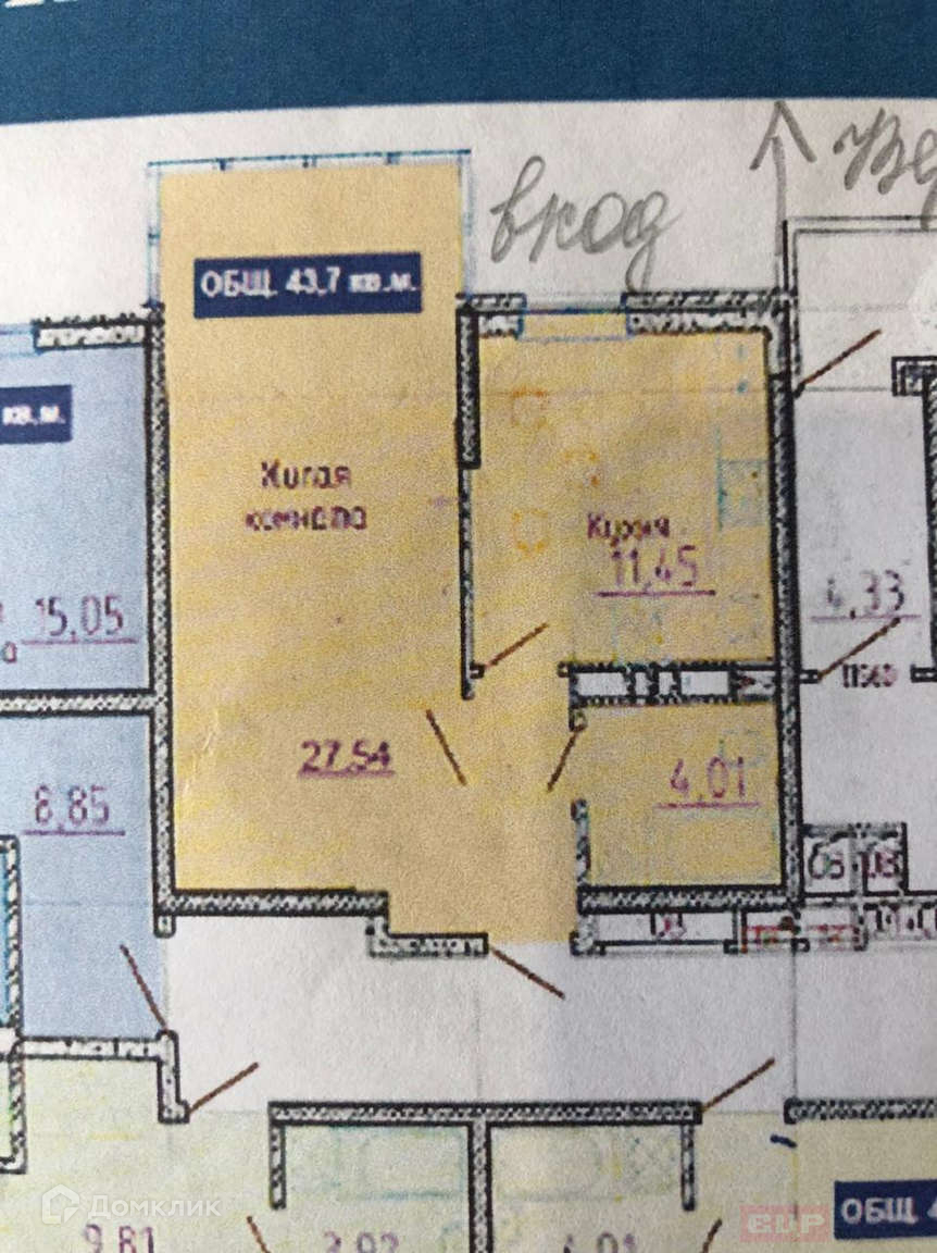 Квартира общей площадью 43,7м2, комната 27,5м2, кухня 11,4 м2. В квартире частично выполнен ремонт от собственника и застройщика, установлена входная дверь, пластиковые окна, радиаторы хорошего качества, постелен на полу ламинат, установлена сантехника, в остальном квартира требует ремонта. Частично остается мебель и отделочные материалы для того чтобы сделать ремонт в санузле. Центральное отопление и водоснабжение. Очень удобное расположение, в шаговой доступности Красная площадь, продуктовые магазины, школы, садики и поликлиники.