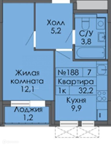Квартира с изолированными комнатами расположена на 15 этаже 15-этажного дома общей площадью 32,2 м2 .