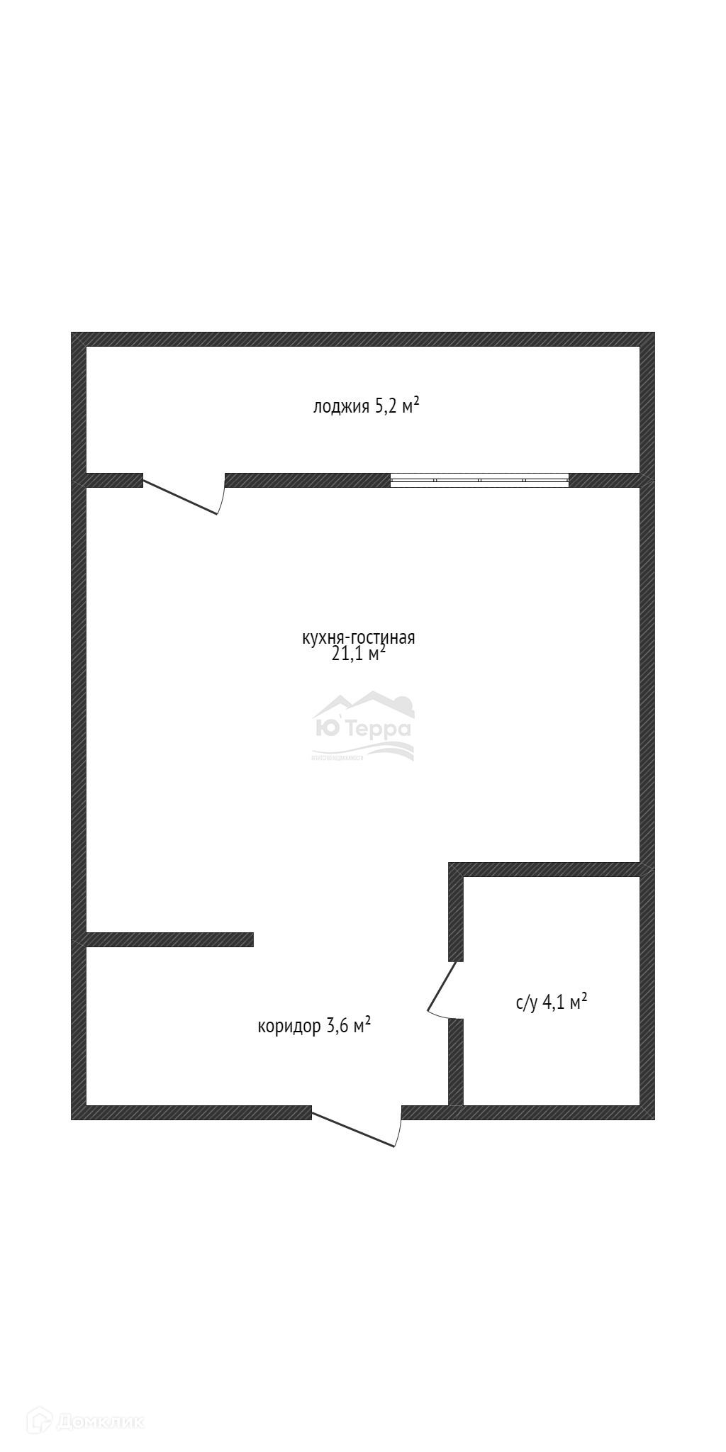 Жилая площадь 21.1 м2