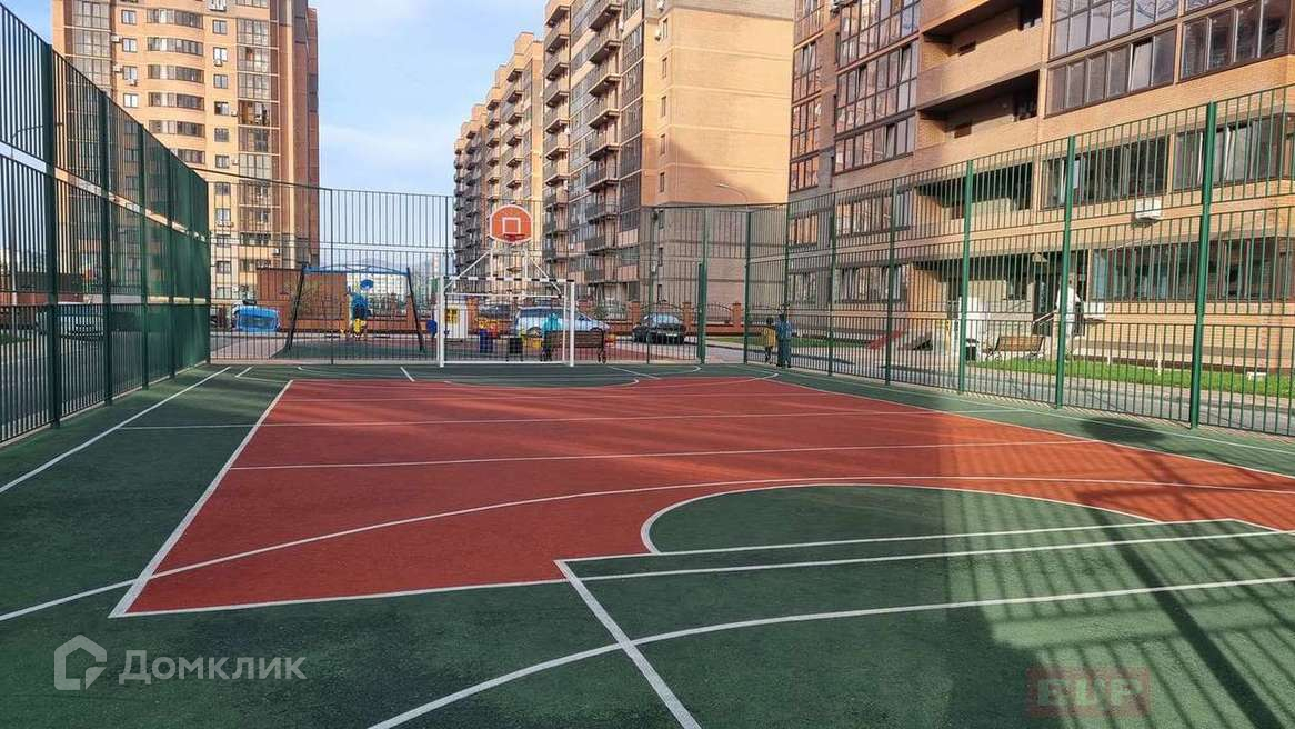 Двор большой, зеленый, оснащен детской и спортивной площадками, системой видеонаблюдения. В жилом комплексе есть подземный паркинг.