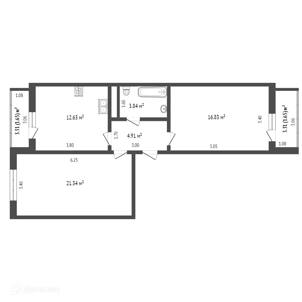Общая площадь 60 м2