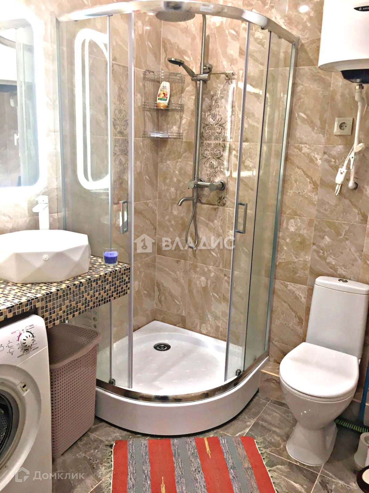 В квартире сделан ремонт. в санузле - на полу и на стенах керамическая плитка. Установлена новая современная сантехника, водонагреватель на 80 литров, душевая кабина, электрический полотенцесушитель, стиральная машинка.