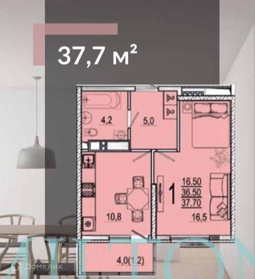 Общая площадь 37.7 м2