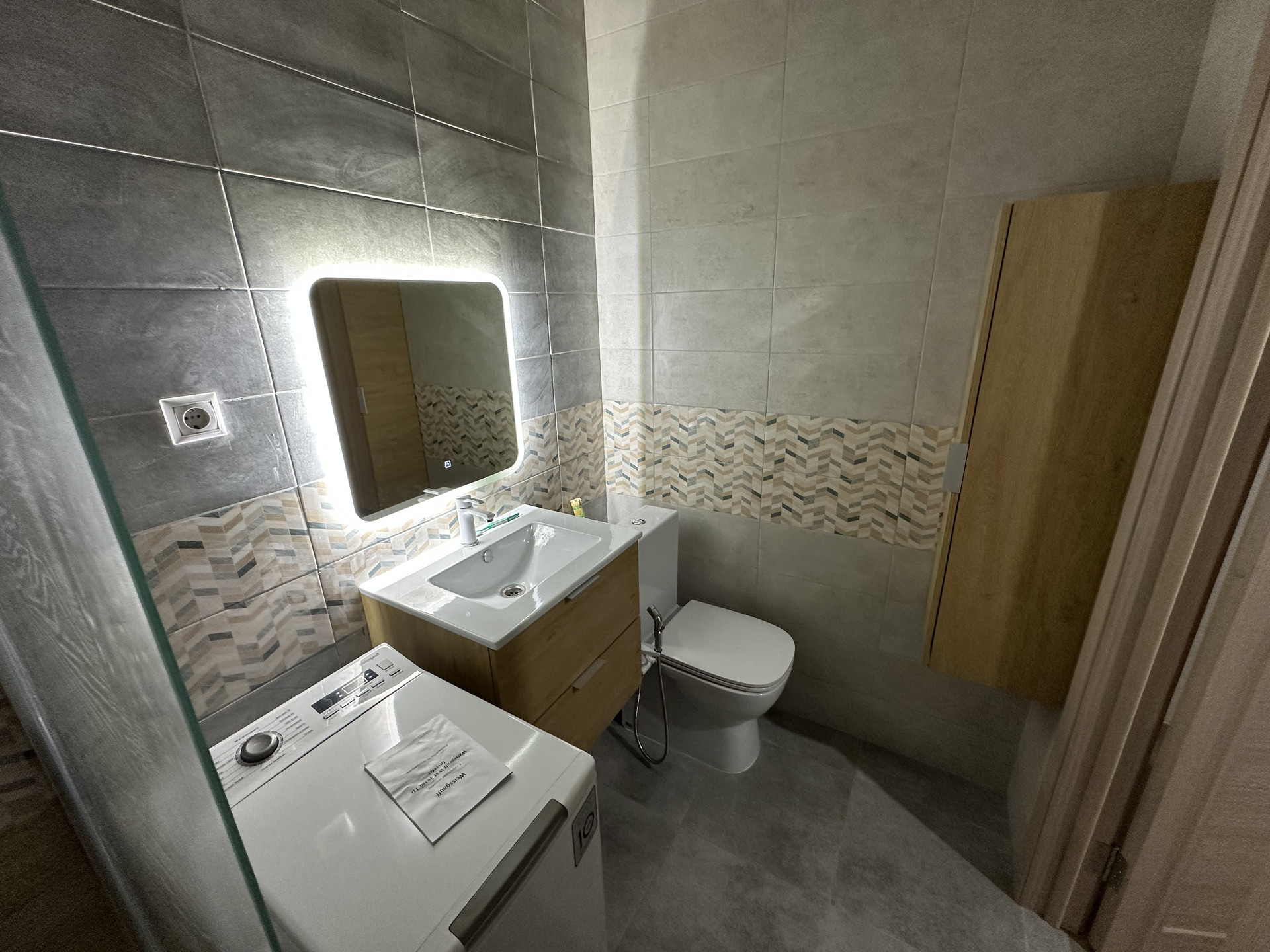 - В ванной комнате установлен гигиенический душ и закаленное матовое стекло 0,8 мм.