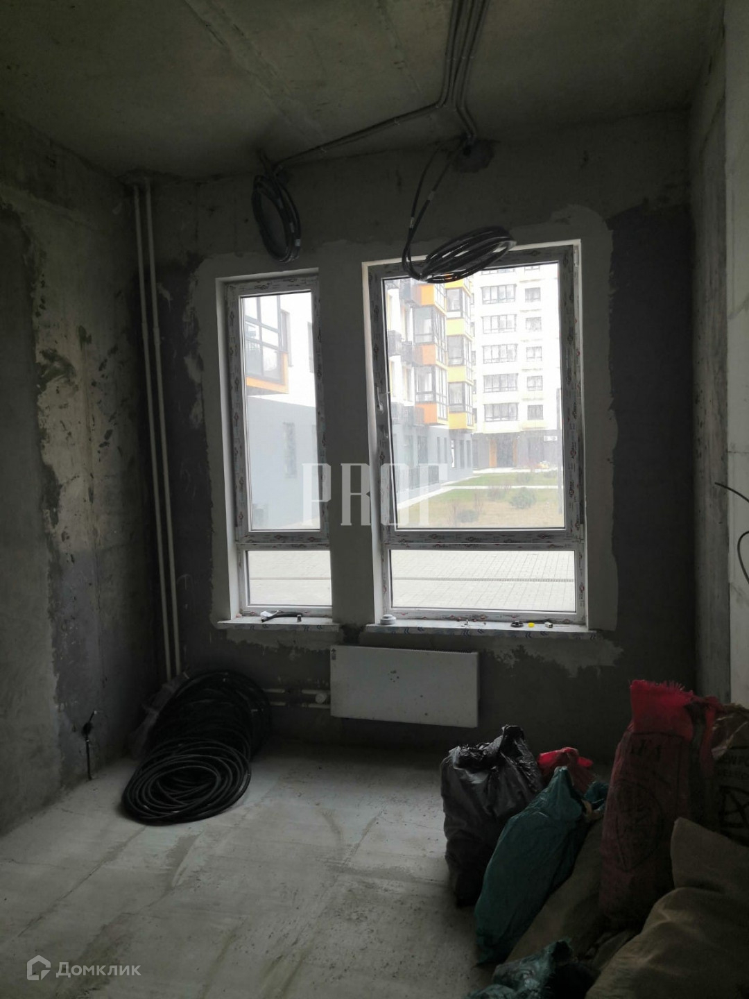 В квартире оштукатурены стены, произведена стяжка пола, установлены радиаторы отопления, имеется разводка электричества. Квартира - распашонка, вид из кухни и комнаты во двор, вид из второй комнаты на море.