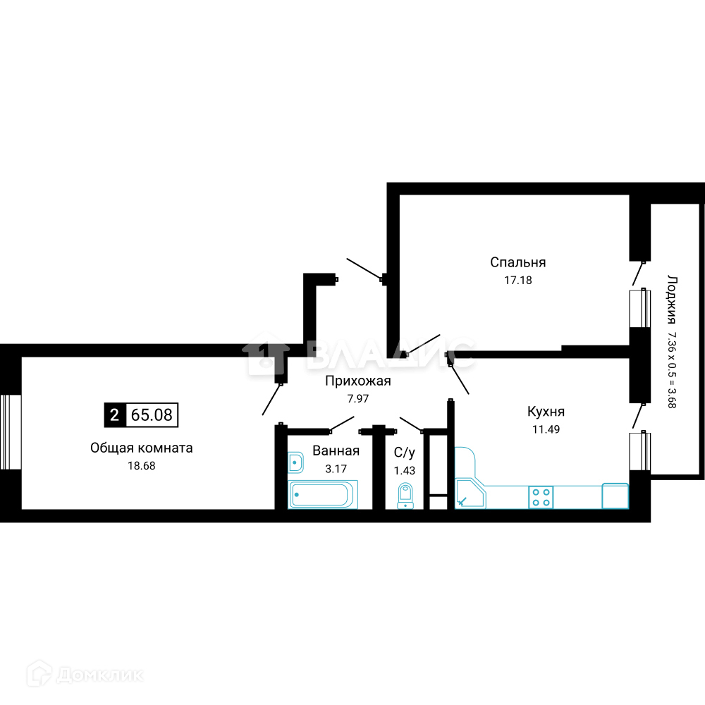 Общая площадь 65.08 м2