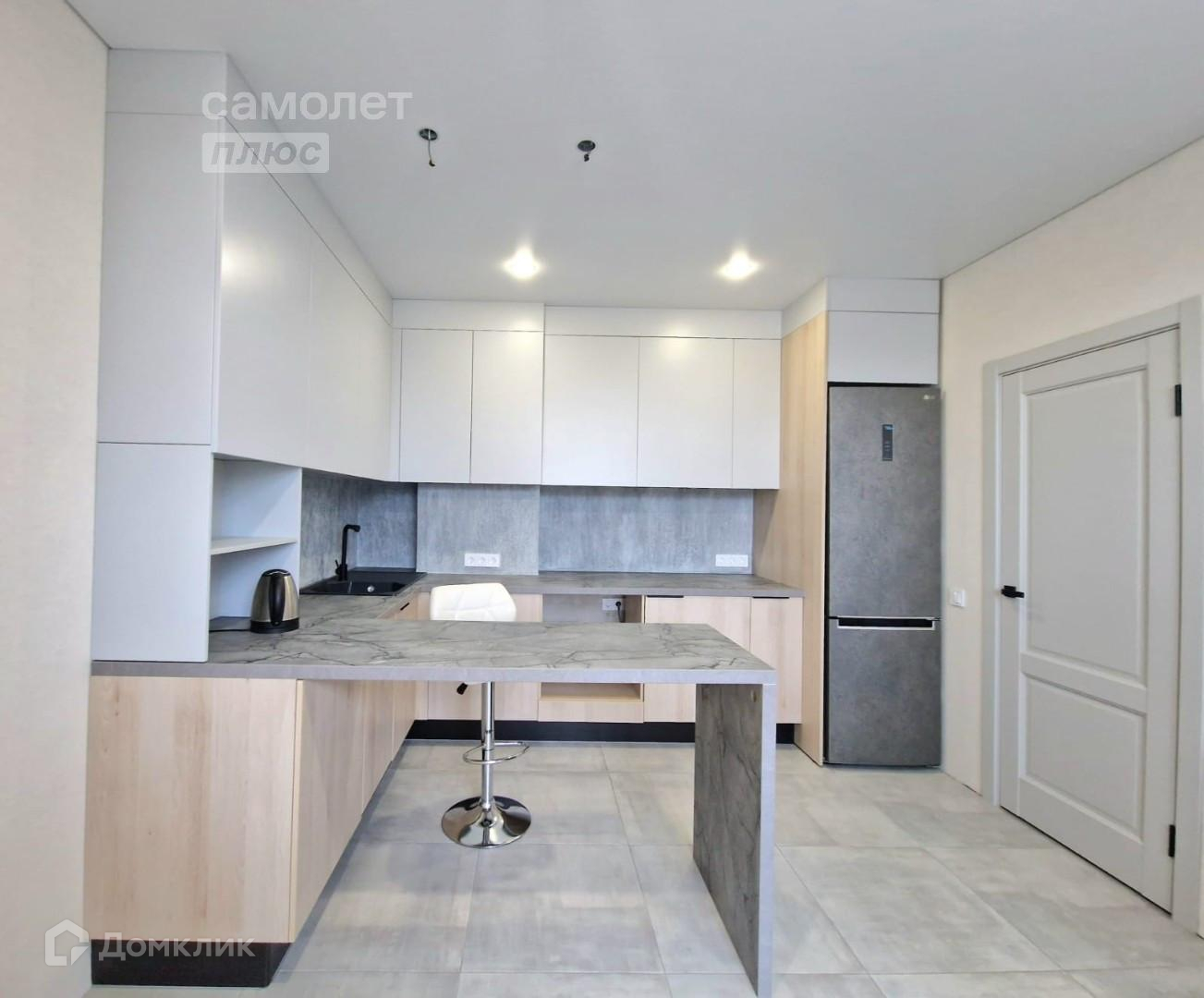 - стильная кухня, «фартук» кухни декорирован камнем ручной работы бренда Дарьи Гейлер, в кухне предусмотрены места под посудомоечную машинку, стиральную и духовой шкаф