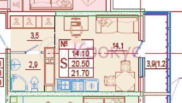 Общая площадь 21.7 м2
