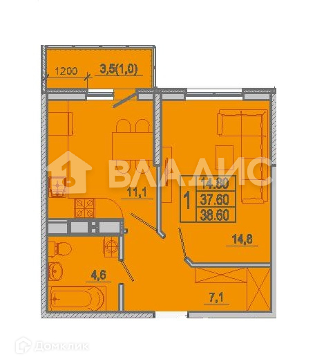 Балкон, лоджия 1 лоджия