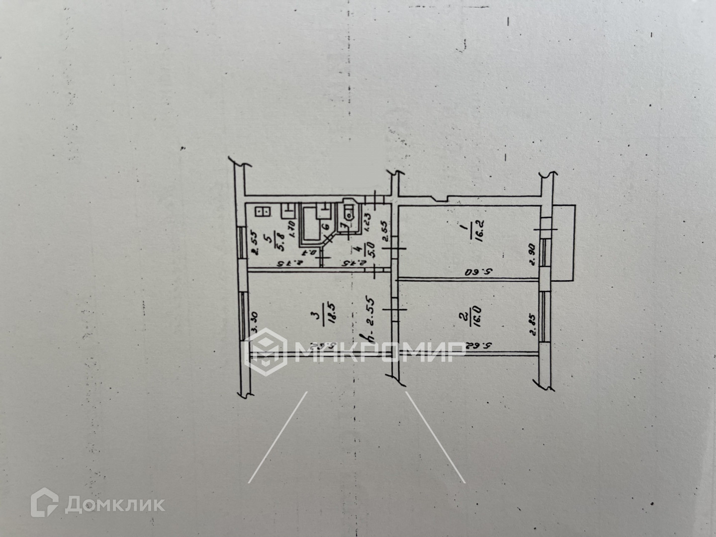 Жилая площадь: 18,5 + 16.0 + 16,2 м2 = 50,7 м2.