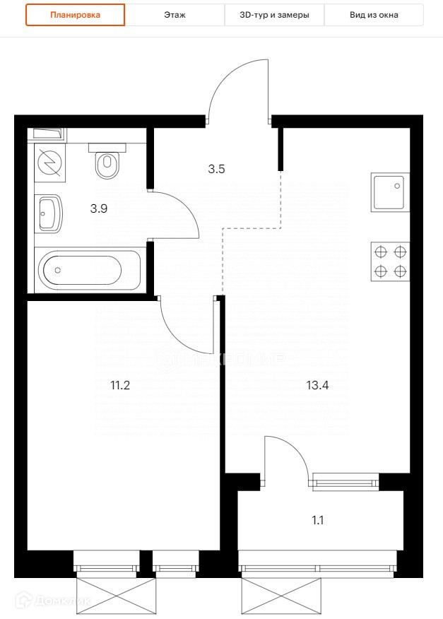 Общая площадь 33.1 м2