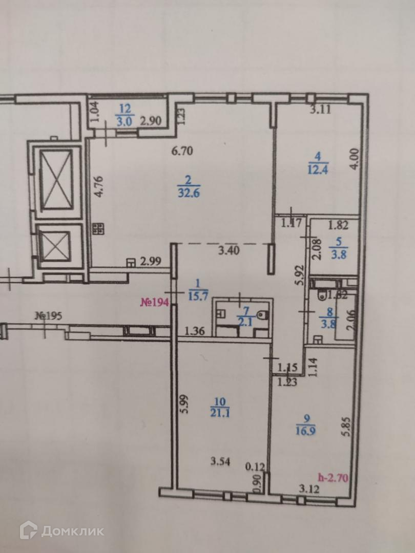 Высота потолков 2.7 м