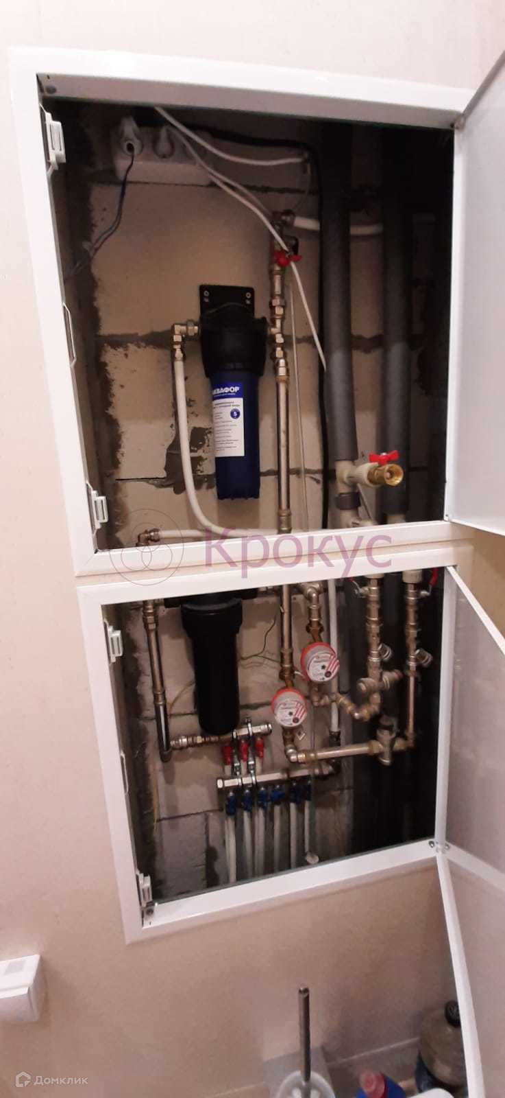 Коллекторная разводка водопровода и отопления, без стоков, трубы отопления по периметру квартиры, что даёт дополнительное тепло пола.