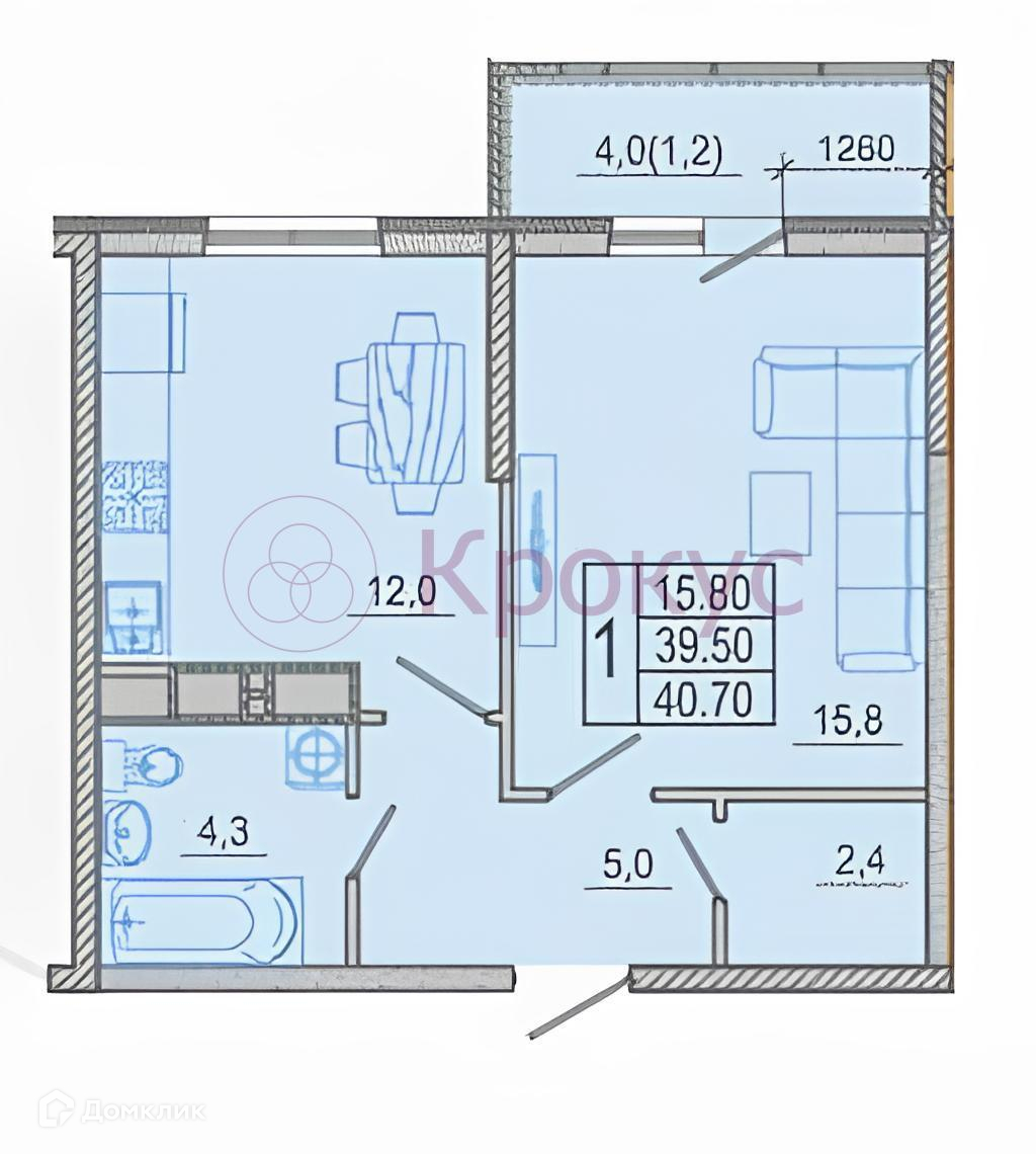 Общая площадь 40.7 м2