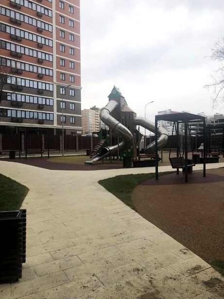 Придомовая территория прекрасно обустроена: есть детские площадки, спортивная площадка, поле для минифутбола, площадка для выгула животных.