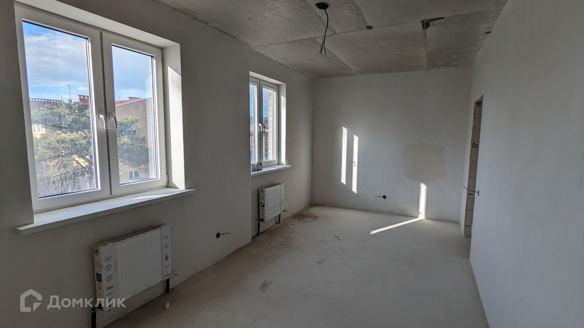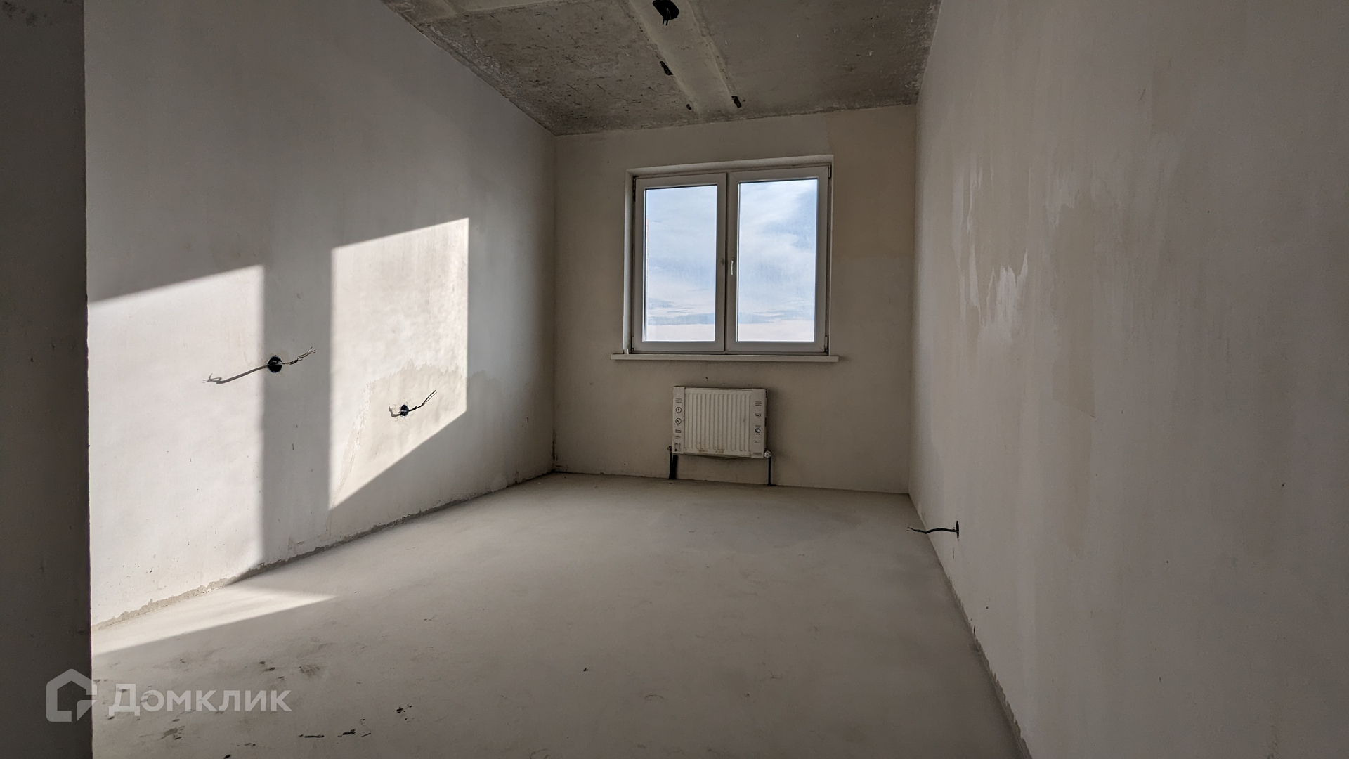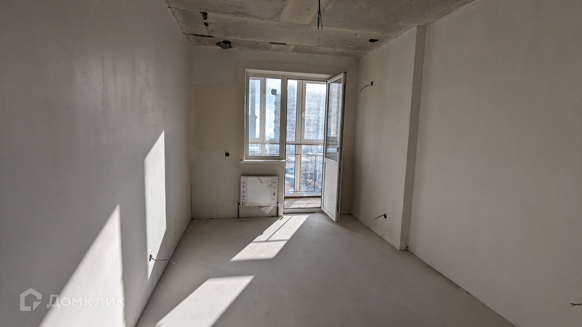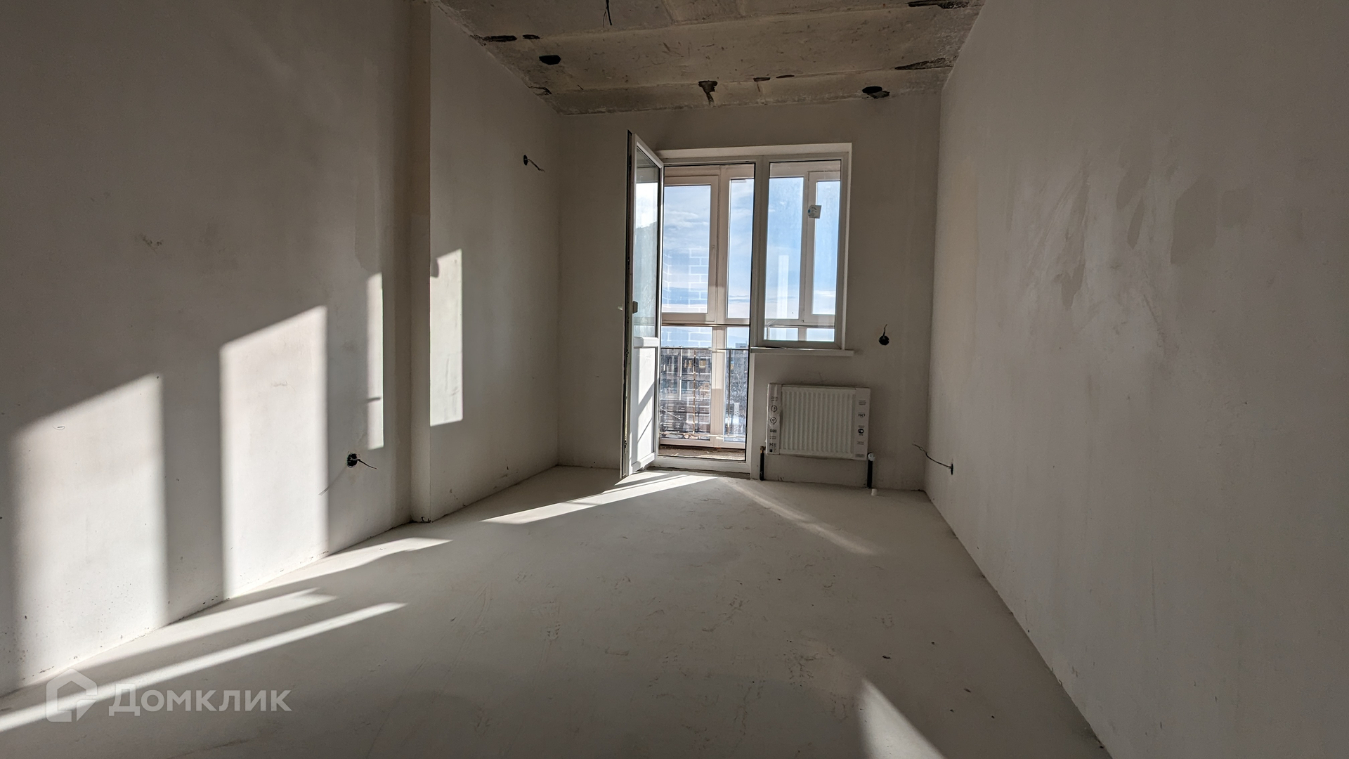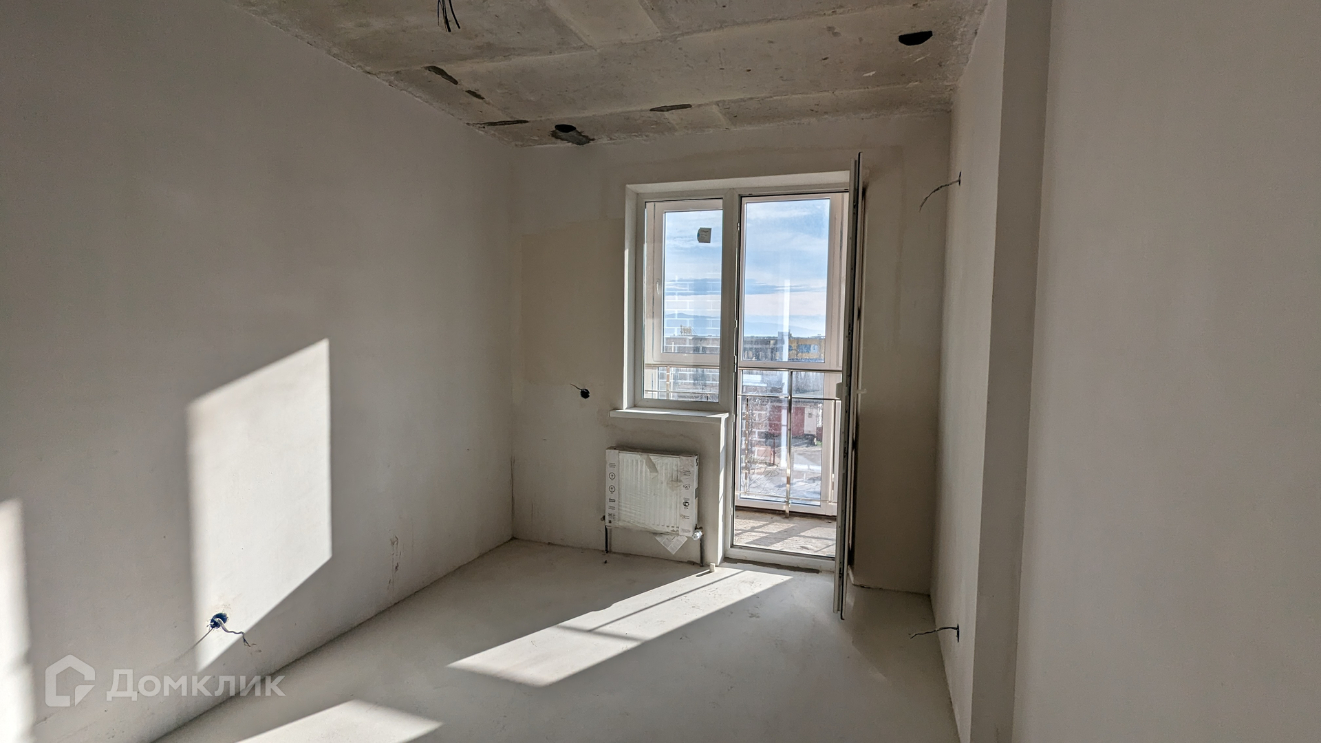 Квартира в предчистовой отделке: пол - стяжка + наливной пол, стены - механизированная штукатурка, прокинута проводка,отопление разведено,установлены радиаторы отопления, огромный балкон с остеклением в пол, установлена хорошая входная дверь, расположена на 3-м этаже, окна выходят на 2 стороны.